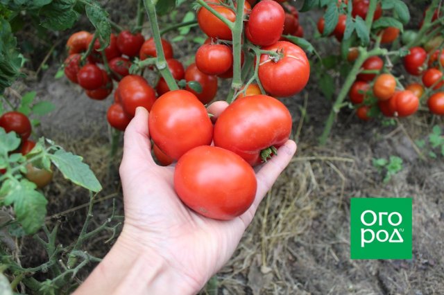 Кусты компактные, высотой около 50-60 см, очень крепкие и урожайные: в кисти формируется 5-6 томатов. Растения желательно подвязать к опоре, поскольку они падают под тяжестью плодов.