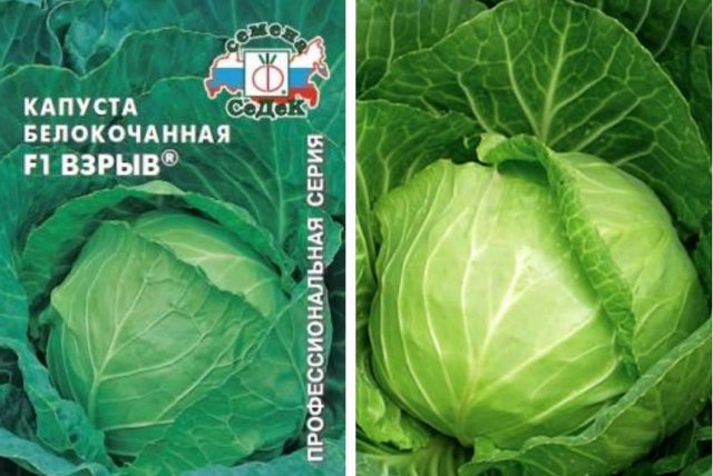 Ультраскороспелый гибрид Взрыв F1, несмотря на то что он рекомендован для Западно-Сибирского и Волго-Вятского регионов, с успехом выращивают и в средней полосе. У растения компактная розетка, светло-зеленые листья с восковым налетом. Небольшие круглые кочаны вырастают массой до 1,4 кг, не растрескиваются, на разрезе белого цвета.
