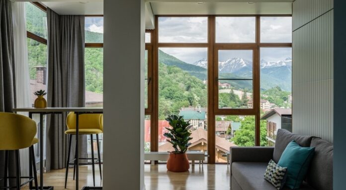 Дизайнер Елизавета Ткачева оформила квартиру для сдачи в краткосрочную аренду в красивом месте с видом на горы, применив множество функциональных решений.