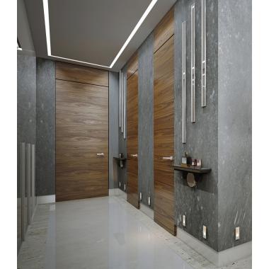 Их не видно, только ручка двери может говорить о том, что они есть. Скрытые конструкции отлично сливаются со стеной, они позволяют разыграться любому воображению. Компактность также стоит на первом месте. Установив себе данные конструкции вам не нужно будет покупать никаких дополнений. Потому вы можете без проблем их ставить в небольших по площади помещениях, к примеру, в гардеробной или санузле. Важно отметить, что есть возможность отделки, если в обычных дверях ее нереально провести, то здесь вполне реально.