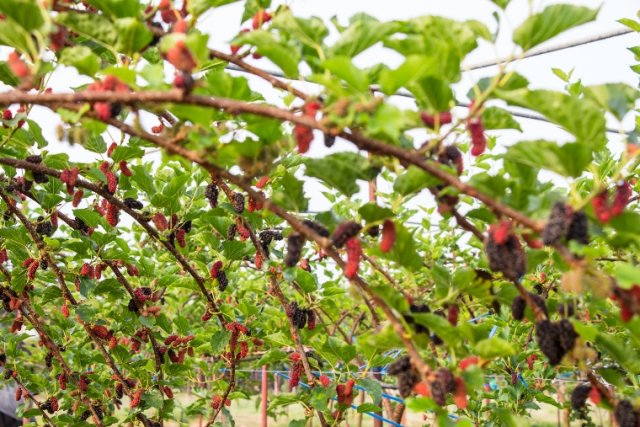 - Чтобы упростить задачу по сбору урожая, попробуйте выращивать шелковицу в форме куста, ограничивая высоту до 3-3,5 м.