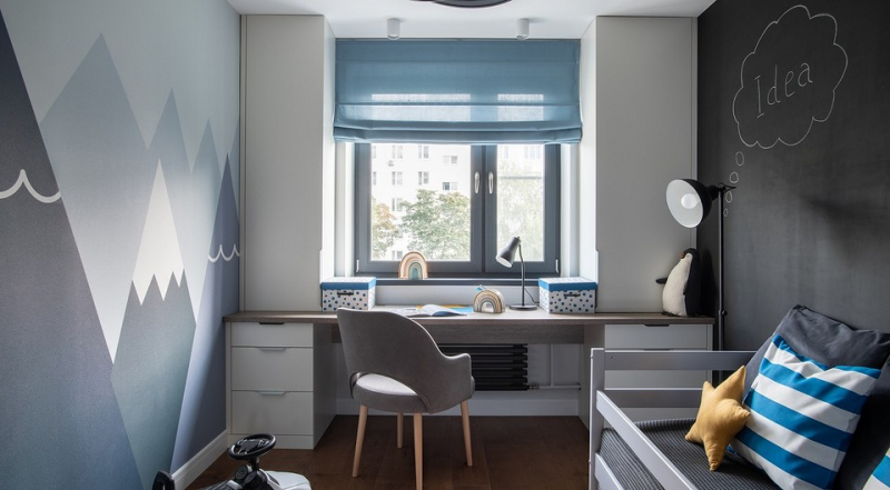 В интерьере комнаты мальчика каждая мелочь должна быть стильной и красивой включая оформление окон.