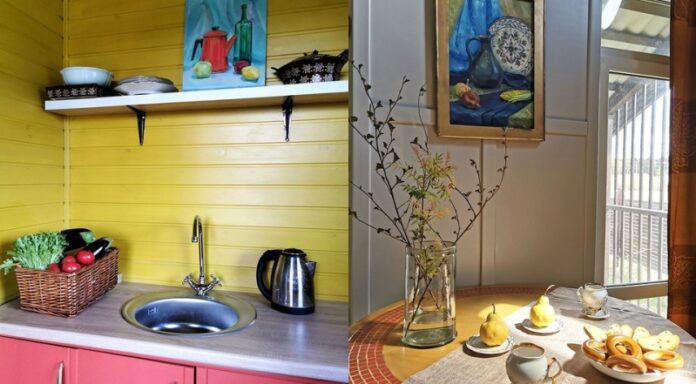 Аксессуары, живопись, текстиль играют большую роль в создании уюта. Так, стены домика украшают натюрморты Карины Журавлевой, дочери автора проекта, профессиональной художницы.