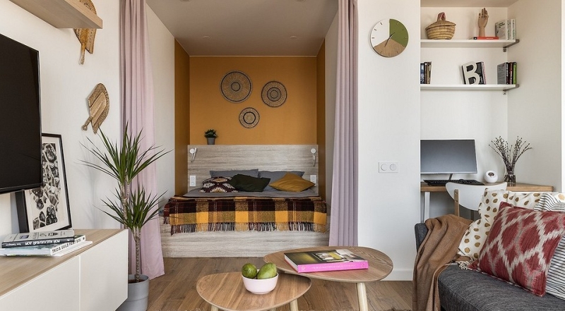 2 Спальня в укромной нише и объединенная кухня-гостиная