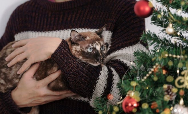 Итак, как установить новогоднее деревце в квартире так, чтобы кот-шалун (а иногда и особенно активный пес) до него не добрались?