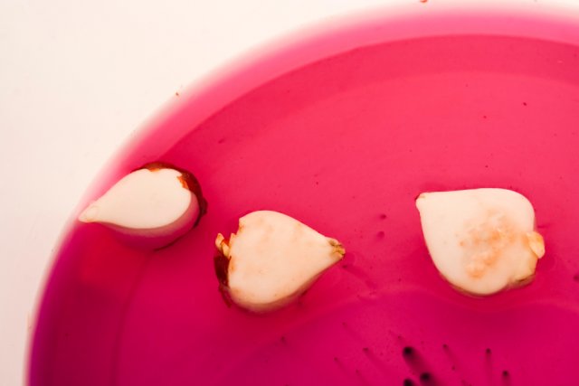 - Перед посадкой луковицы следует продезинфицировать. Данная процедура поможет защитить их от грибковых и бактериальных болезней. Для дезинфекции перед посадкой опустите луковицы на 30 минут с светло-розовый раствор перманганата калия (марганцовки). Можно также использовать любой фунгицид, который предназначен для замачивания посадочного материала, например Споробактерин или Фитоспорин-М.