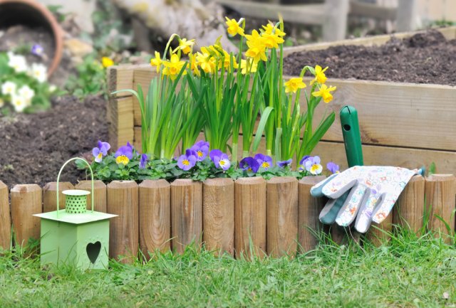 Сделать цветочную композицию аккуратной поможет невысокое ограждение, которое нужно вкопать в землю на глубину около 20 см. Для этого можно использовать специальные бордюрные ленты или заборчики из плотного пластика. Можно также соорудить кирпичный или каменный бордюр, но тогда стоит позаботиться о подложке из песка и щебенки, чтобы он сохранял форму и не «поехал» на мягком грунте.
