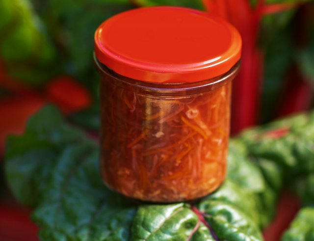 Вам понадобятся: 1 кг свеклы, 1 кг капусты, 1 кг томатов, 500 г лука, 500 г моркови, 500 г болгарского перца, 200 г растительного масла, 6 ст.л. сахара, 4,5 ст.л. крупной соли, 3 ст.л. 9%-ного уксуса, специи и пряности по вкусу.