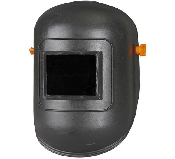 - Простой сварочный щиток. Данный вариант является самым бюджетным на рынке и пользовался ещё не так давно популярностью среди профессионалов, но основным его недостатком является тот факт, что одна рука при этом оказывается занята, а это крайне неудобно при выполнении работ и может повлиять на качество результата, поэтому чаще у сварщиков можно встретить маску с откидывающимся щитом.