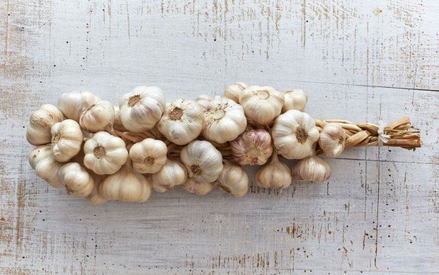 Из чеснока, как и из лука, можно сплести косу (венок). Главное – после сбора и сушки пряного растения не обрезать его стебли, иначе с мечтами о красивых гроздях чеснока, развешенных в кухне, придется распрощаться.