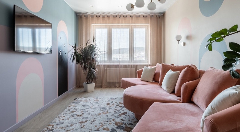 «Конфетные» цвета, арочные формы, терраццо в ванной и на кухне дизайнер Мария Михайлова применила модные приемы и создала фотогеничное пространство для молодой девушки.