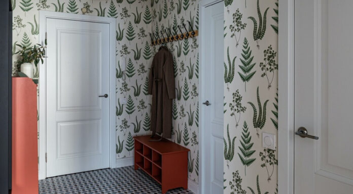 Обои с рисунком скандинавского бренда, не менее интересная плитка на полу, яркая мебель (кстати, это перекрашенная ИКЕА) вот рецепт удачного интерьера прихожей от дизайнера Ульяны Синицыной. И именно по нему она создала прихожую в своей квартире. Поразить гостей с порога? В такой входной зоне легко!