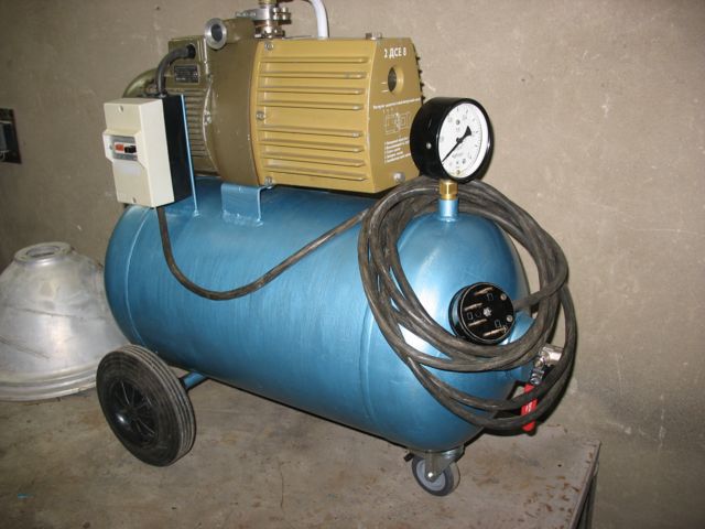 При необходимости обеспечения более высокого показателя разреженности можете использовать оборудование, созданное на основе бытового компрессора, способного нагнетать воздух под высоким давлением.