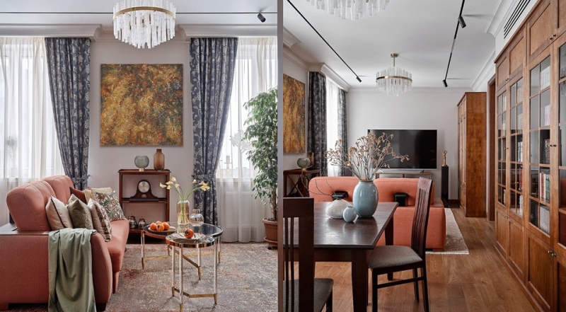 Владельцы квартиры интеллигентная семейная пара, сотрудники Курчатовского научно-исследовательского института. В свободное время любят принимать дома гостей, читать. Хобби у супругов разные хозяйка дома занимается рукоделием, хозяин собирает модели автомобилей. Им требовалось общее пространство для приема гостей, а также приватные зоны для каждого, где можно было бы уединиться. Конечно же, были важны продуманные системы хранения и эстетика интерьера у супругов разные предпочтения по цветам, стилистике, предстояло «подружить» их вкусы. Оформление интерьера они доверили архитектору-дизайнеру Гульнаре Сыровой.