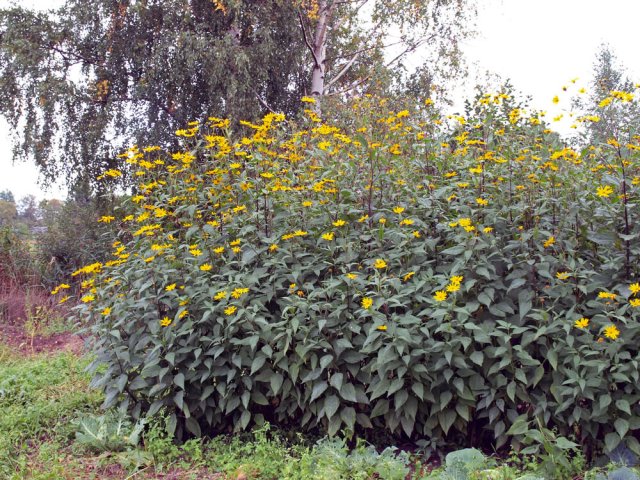 Отлично будет смотреться топинамбур на заднем плане клумбы или альпийской горки, рутария, рокария. Иногда растение высаживают в кадки или вазоны и размещают возле дома или по периметру участка. Одним словом, неприхотливость и быстрый рост земляной груши позволяют создать самые интересные композиции практически в любом уголке дачного участка.