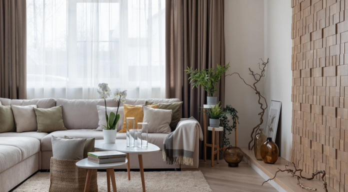 И это касается не только отделки и мебели, но и любых декоративных деталей: от аксессуаров до текстиля, включая занавески. Экологичность не обязательно означает строго натуральные ткани, но по возможности отдавайте предпочтение им. Либо берите хотя бы смесовые материи, а вот от чистой синтетики лучше отказаться.