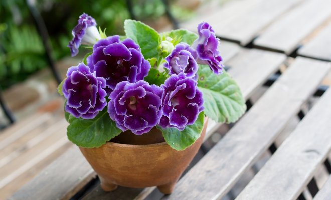 После раскрытия первых бутонов горшок с глоксинией нужно переместить с яркого света в полутень – это поможет растению дольше держать соцветия. С этой же целью стоит понизить температуру содержания.