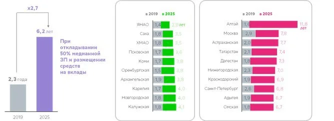 При этом показатели существенно отличаются от региона к региону. В топ-10 регионов с минимальным сроком накопления на первоначальный взнос вошли Ямало-Ненецкий автономный округ (2,9 года), Республика Саха (Якутия) и Ханты-Мансийский автономный округ (по 3,5 года), Псковская область (3,6 года), Республика Коми, Оренбургская и Архангельская области (по 3,8 года), Республика Карелия и Новгородская область (по 4 года), Калужская область (4,1 года).