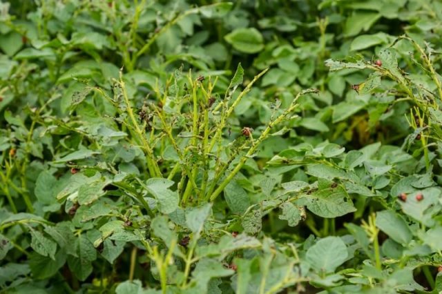 И личинки, и взрослые особи колорадского жука очень прожорливы. В короткие сроки они уничтожают листья и стебли картофеля, томатов, перцев, баклажанов, не оставляя растению шансов на дальнейшее развитие.