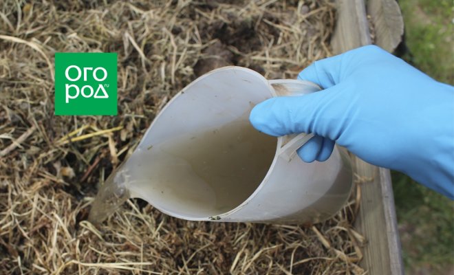 Эффективным ускорителем компостирования является также настой куриного помета. Для этого 2 кг помета заливают 10 л воды и настаивают 3-5 суток, в зависимости от температуры воздуха. Чтобы неприятный запах из емкости не распространялся вокруг, ее необходимо накрыть крышкой. После того как раствор потемнеет, его дополнительно разводят водой в пропорции 1:10 и вносят в компостер.