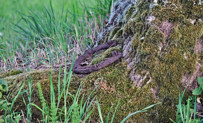 И вот именно на этом этапе мы возвращаемся к теме статьи. Интернет пестрит советами от «бывалых садоводов» при недостатке этого элемента в почве «обогатить» грунт железом путем вкапывания под деревья и кустарники различного железного лома – от старых подков до ржавых гвоздей, амбарных замков, мотков проволоки и консервных банок. Мол, так полезный элемент перейдет в почву, а оттуда будет «забран» растениями. Некоторые «умельцы» предлагают поступать еще радикальнее – и попросту вбивать эти самые ржавые гвозди в ствол дерева, чтобы, так сказать, «поставлять» железо той же яблоне (почему-то именно это плодовое чаще всего фигурирует в подобных лайфхаках) «напрямую».