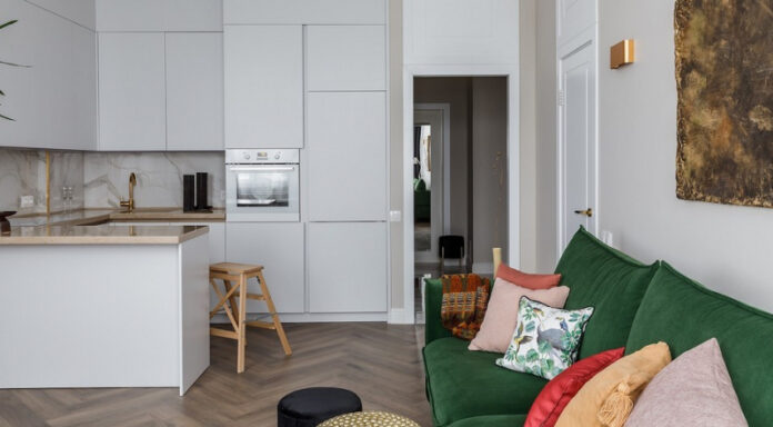 Если у вас интерьер в стиле минимализм или контемпорари, обратите внимание на модульные системы. Они смотрятся очень стильно, а вы можете выбрать любые секции, которые вам нужны, и их расположение. В итоге вы получаете функциональный прямой, круглый или угловой зеленый диван, который идеально вписывается в размеры комнаты. В студиях и однушках часто используют раскладные модели софа может быть как основным, так и запасным спальным местом.
