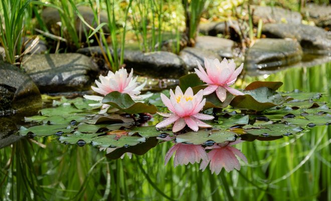 Владельцам средних по глубине и размеру водоемов опытные садоводы предлагают такой способ: уложить над водной поверхностью несколько длинных досок и застелить их плотным спанбондом или лутрасилом в два слоя. Под таким укрытием вода не промерзнет слишком сильно, и растения смогут комфортно перезимовать.